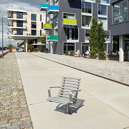 Zu einem guten Spielplatz gehören auch Bänke und Sessel. Orte der Ruhe und Gelassenheit für die ach so gestressten Eltern. Der Europahafen ist eines der neuen IN-Quartiere in Bremen. Kaum ein Ort verkörpert die Pole der norddeutschen Hafenstadt besser als diese Location. Tradition und Moderne, Alt und Neu treffen im Alltag unweigerlich aufeinander. Ein idealer Platz für unsere Edelstahlbänke. Fast zeitlos fügt sich das robuste Mobiliar in diese Hafenkulisse ein. Platz dafür ist überall dort, wo Menschen inne- halten wollen, einen Platz brauchen, um Pause zu machen oder einfach auch nur zu verweilen.