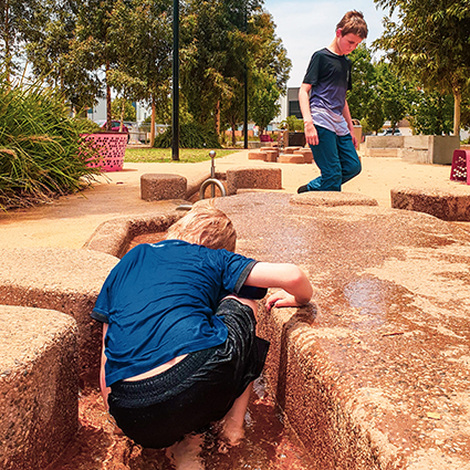 Der Stadtpark ist das Herz und der Treffpunkt von Playford Alive. Im Stadtzentrum gelegen, befindet er sich in der Nähe von Gemeinde-, Einzelhandels- und Bildungseinrichtungen. Der Park ist ein Ort, an dem Familien und Freunde zusammenkommen und ihre Kultur feiern können – ein Raum, in dem sich Menschen aller Hintergründe und Altersgruppen treffen und miteinander in Verbindung treten. Wir freuen uns, Teil dieser schönen Gegend zu sein, und wünschen allen Familien viel Spaß mit unseren Kaiser & Kühne Wasserspielgeräten, der Seilbahn und den Schaukeln.